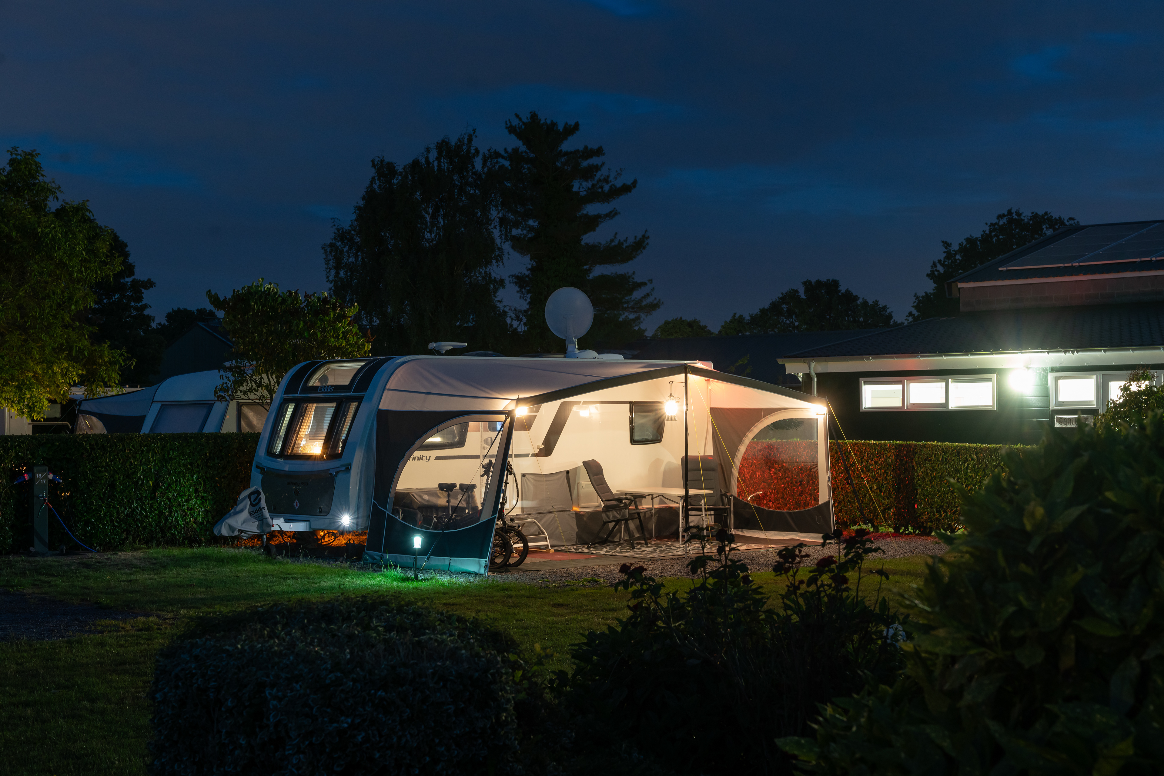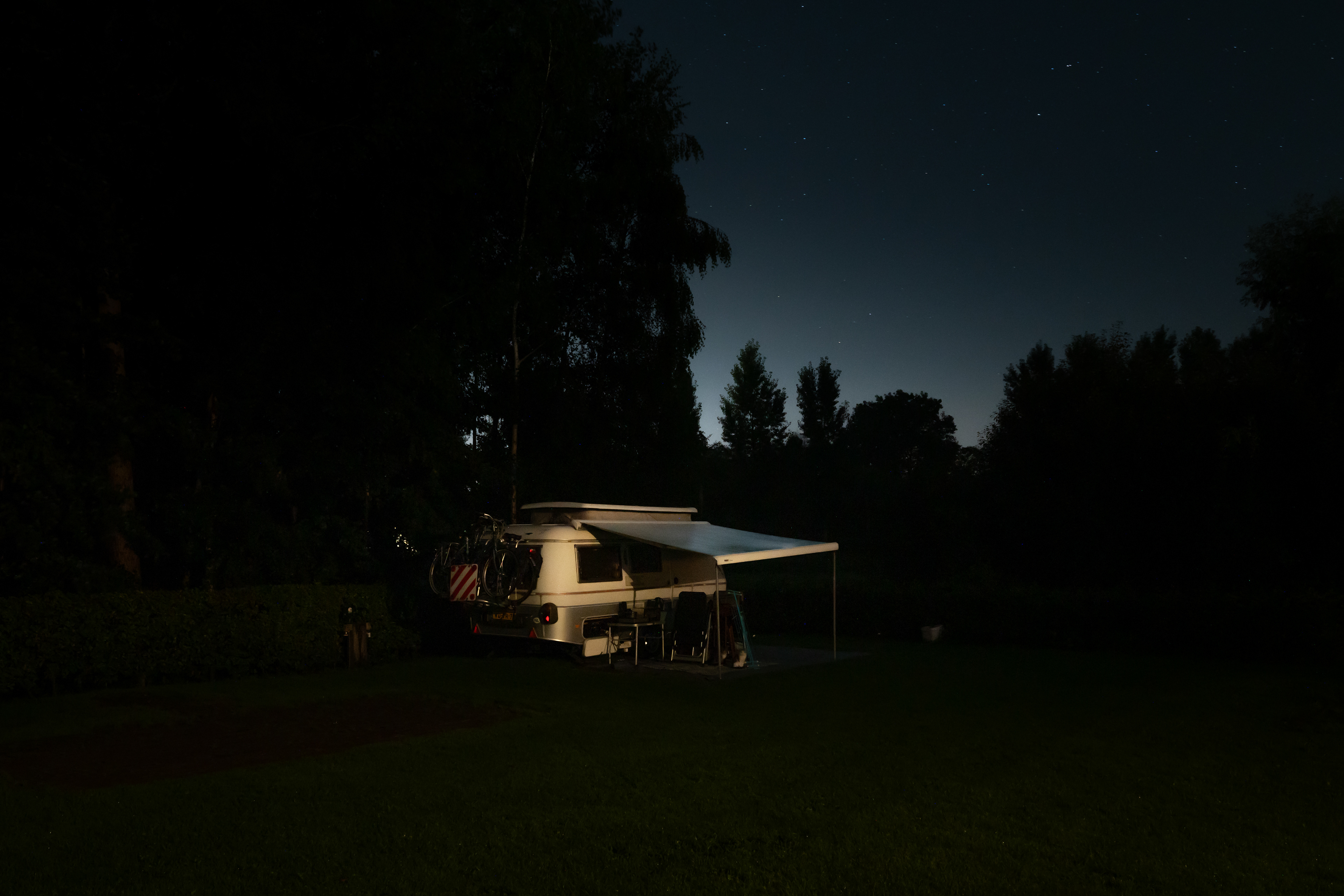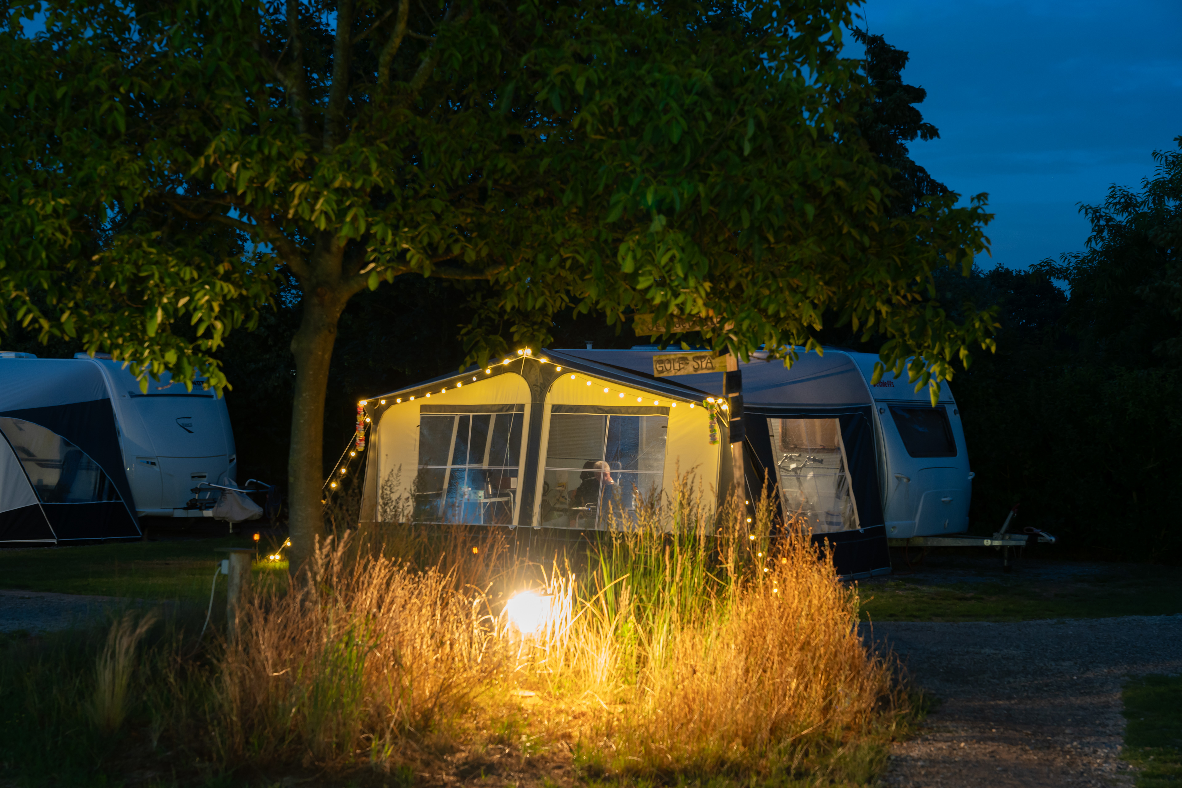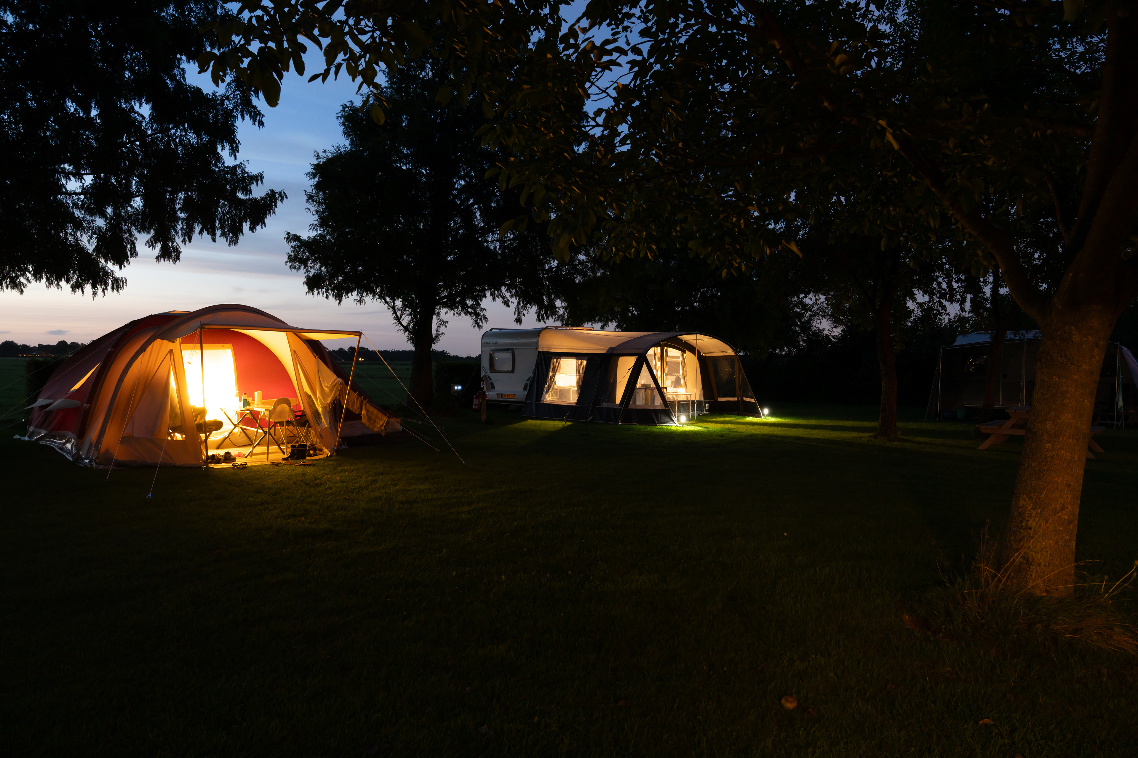 De heldere sterrenhemel boven de camping, de gezellige lichtsnoeren aan de luifel of een lampje wat de tent oplicht.